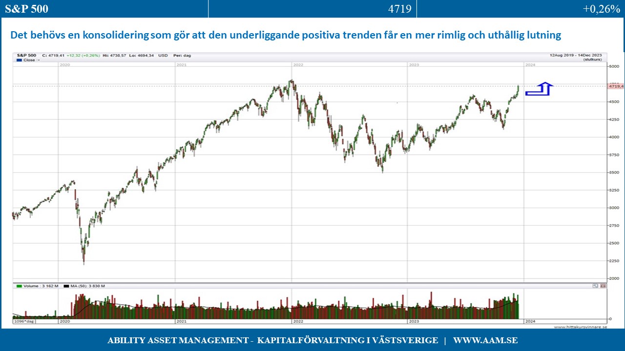 Om det inte inträffar en rekyl efter torsdagens markanta uppgång på den svenska börsen så behövs det, som i USA, åtminstone en paus och konsolidering som gör att den underliggande positiva trenden får en mer rimlig och uthållig lutning. Med en positiv börs i ryggen finns det dock köplägen som vi har nyttjat, men det gäller att i nuläget agera uttalat selektivt med omsorgsfull stockpicking tills marknaden samlat kraft inför en förnyad uppgångsfas.