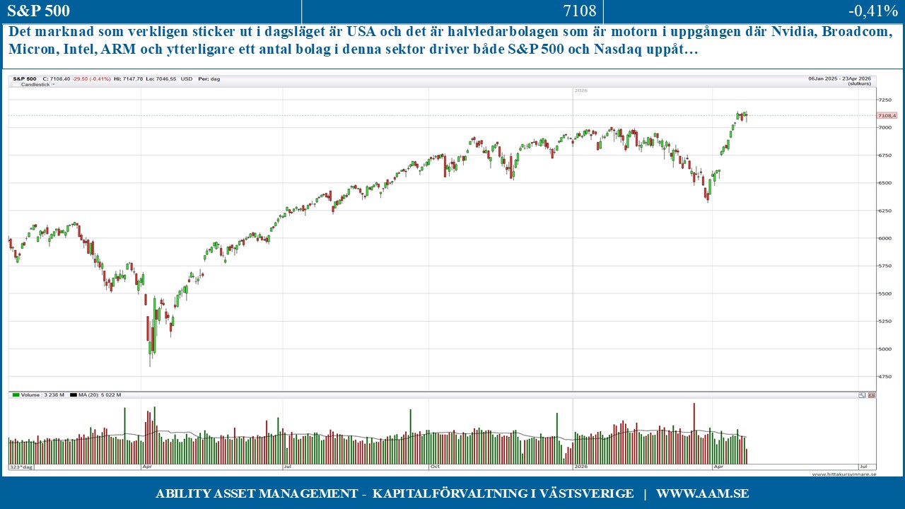 Inför rapportperioder ska man aldrig peka med hela handen avseende den troliga börsutvecklingen, men med hänsyn till den styrka som USA, Europa och Asien uppvisade såg vi efterhand förutsättningar för vidare uppgång i Sverige förutsatt att kriget mot Iran inte blossade upp igen och att rapportperioden inte blev en besvikelse.
