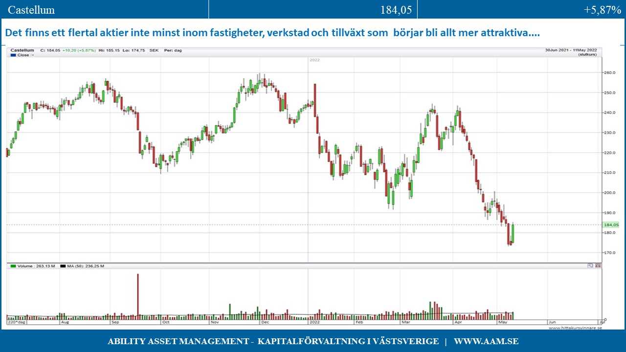 När vi studerar den svenska börsen finns det ett flertal aktier inte minst inom fastigheter, verkstad och tillväxt som har fallit påfallande mycket och som värderingsmässigt börjar framstå som allt mer attraktiva.